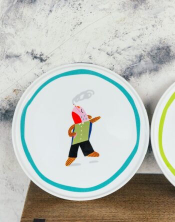 The RH x In The Roundhouse Dinner Plate boasts a unique design with the plates featuring the restaurant’s much-loved characters – a dancing goose, a boozed hare, a smoking trout, and a wine-loving fox – illustrations created by Los Angeles native, Ping Zhu.